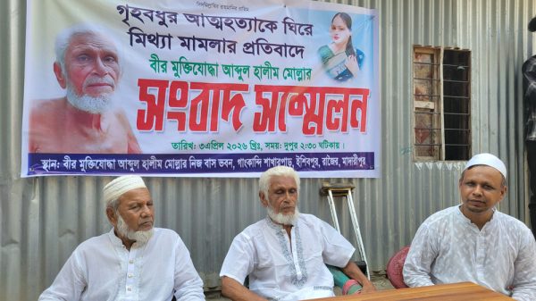 রাজৈরে গৃহবধুর আত্মহত্যার ঘটনায় হয়রানীমূলক মামলার প্রতিবাদে সংবাদ সম্মেলন।