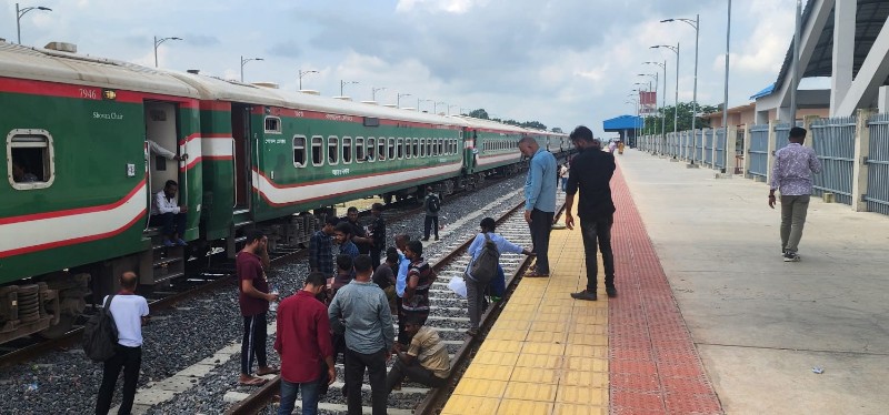 ভাঙ্গা রেল পুলিশের ইনচার্জ শাবুর হোসেন জানান, ঢাকাগামী জাহানাবাদ ট্রেন মুকসুদপুর আটকা পড়েছে। যাত্রীদের দুর্ভোগ পোহাতে হচ্ছে। অবরোধকারীদের শান্ত না করা পর্যন্ত রেল চলাচল স্বাভাবিক হবার সম্ভাবনা নেই।